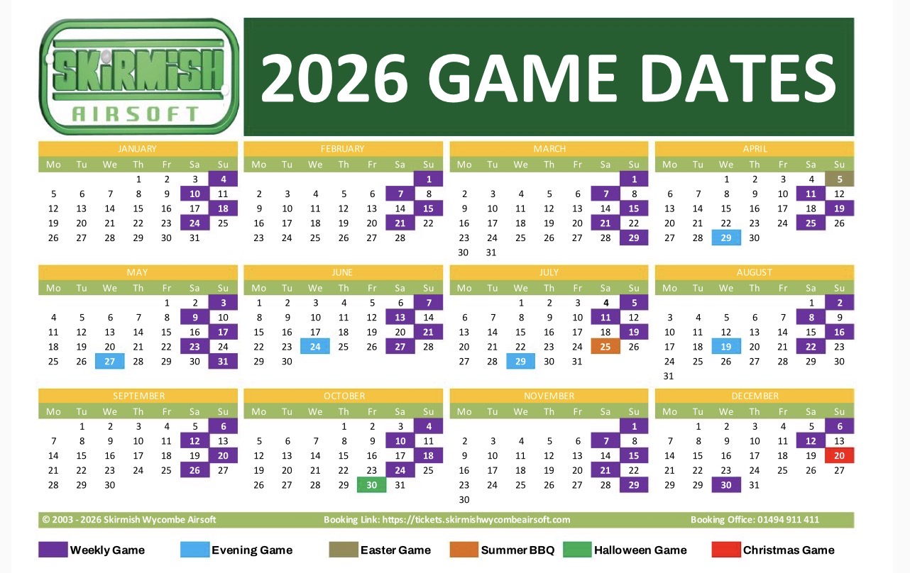 Our game day calendar at Skirmish Wycombe Airsoft is packed with thrilling and action-packed events that cater to players of all skill levels and preferences. We offer a diverse range of game scenarios, from intense objective-based missions to exhilarating team battles, ensuring there’s always something exciting for everyone. With regular game days scheduled throughout the year, you can easily find a date that suits your availability and join in on the airsoft fun. Our dedicated team works hard to create immersive and dynamic gameplay experiences that keep players engaged and entertained. Whether you’re a seasoned airsoft veteran or a first-time player, our game day calendar provides an opportunity to test your skills, forge new friendships, and create lasting memories. Check our calendar regularly for upcoming events and mark your calendar for your next thrilling airsoft adventure at Skirmish Wycombe Airsoft.